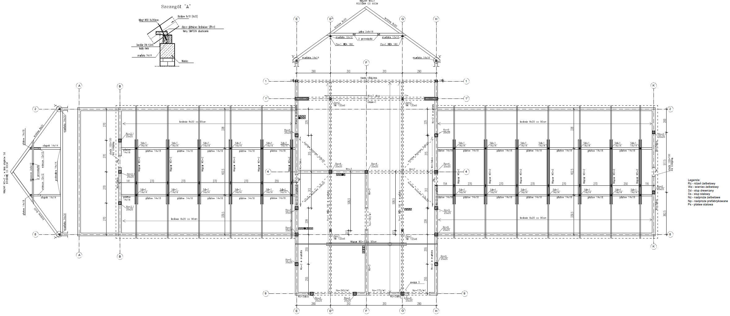 Na całość inwestycji składa się nowoczesna wiata w konstrukcji stalowej z elementami żelbetowych ścian oraz mury oporowe przy skarpie placu zabaw. Dzięki zastosowaniu najnowszego oprogramowania do modelowania konstrukcji stalowej udało się skoordynować prace projektowe w środowisku 3d. Wysokie wymagania architektoniczne wpłynęły na stopień skomplikowania konstrukcji wiaty, ale dzięki zastosowaniu innowacyjnych rozwiązań udało się uzyskać zamierzony efekt.