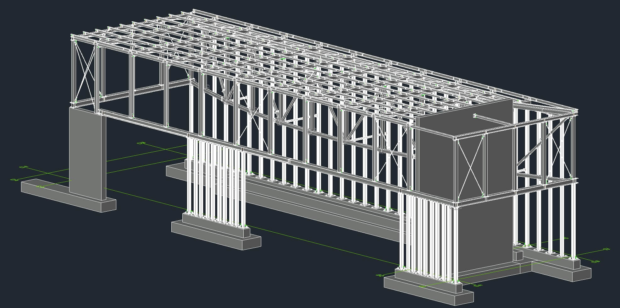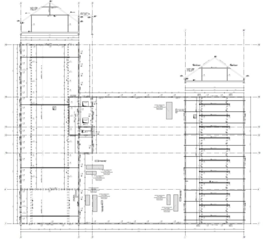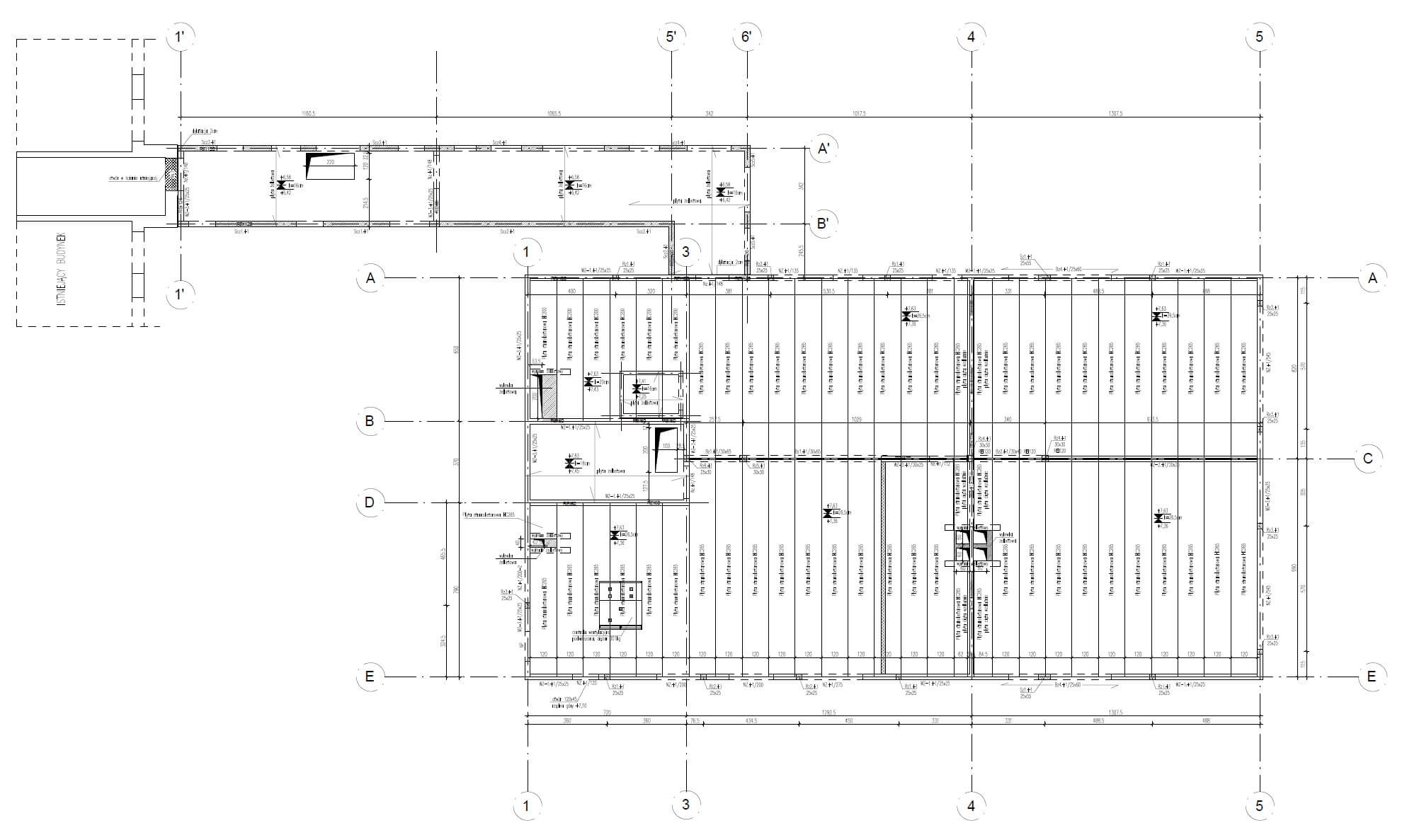 Budynek dwukondygnacyjny z łącznikiem do istniejącego budynku. Ze względu na duże rozpiętości zaprojektowano w większości stropy prefabrykowane z płyt sprężonych. Ściany łącznika żelbetowe wyniesione na poziom piętra na słupach żelbetowych. Zaprojektowano nowe otwory w istniejących ścianach nośnych. Posadowienie bezpośrednie na gruntach rodzimych.